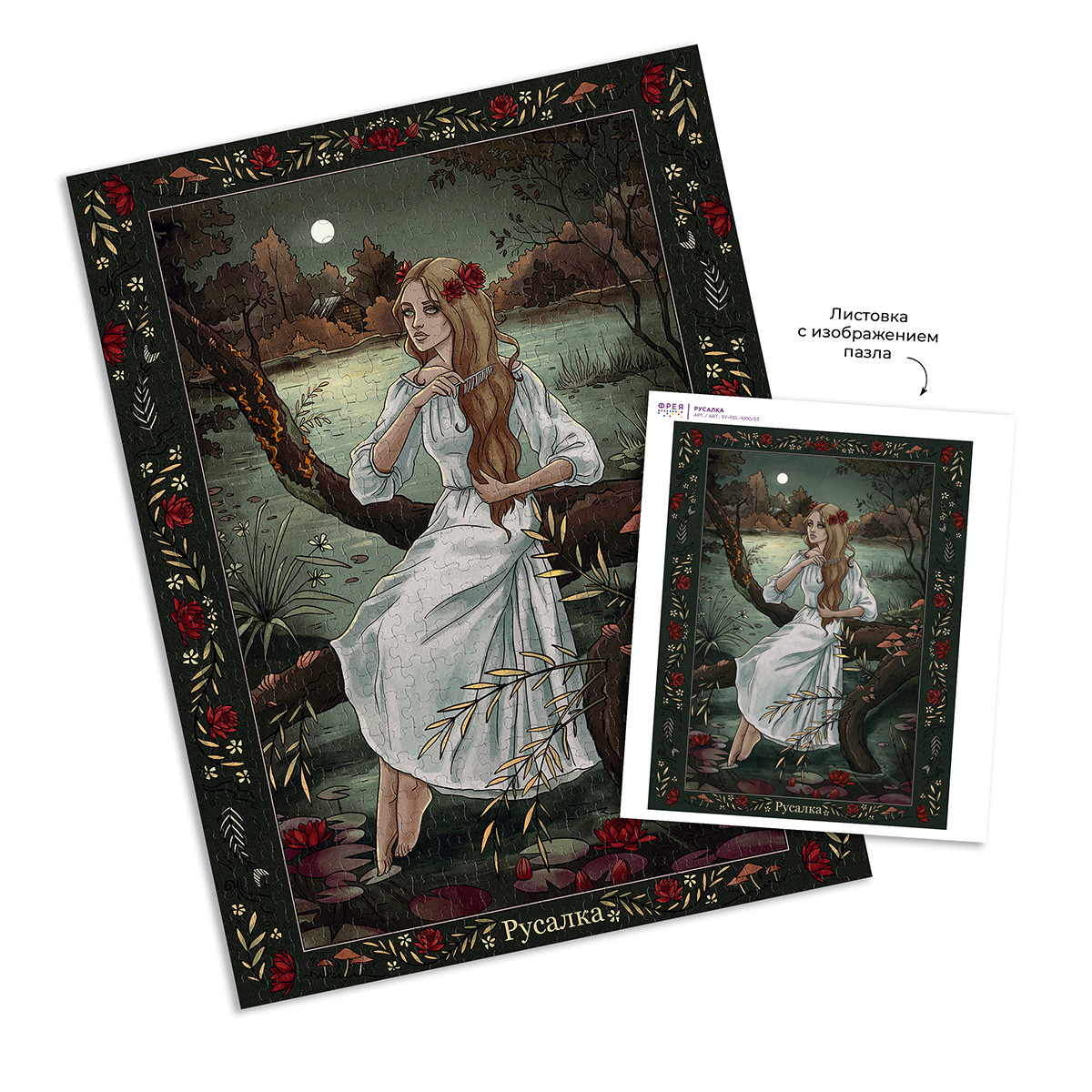 Пазлы ТМ Фрея - это яркие, интересные, увлекательные дизайны. Специально для вас мы разработали уникальную серию картин " Славянская мифология". Готовый пазл с таким сюжетом может стать интересным и необычным украшением интерьера. Также пазлы ТМ Фрея будут отличным подарком для ваших близких. Детали пазлов этой серии толще обычных. Для изготовления деталей мы используем европейский картон премиум качества. Такой картон не деформируется и не расслаивается даже при многократной сборке пазла. Размер готовой работы может отличаться от указанной на сайте. Актуальная информация размещена на упаковке товара. Русалка - персонаж славянской мифологии в виде девушки с длинными распущенными волосами, одетой в неподпоясанную свадебную рубаху. Вопреки образу, сформировавшемуся в массовой культуре, в славянской мифологии русалка никогда не была обладательницей рыбьего хвоста. Таким аксессуаром обладают другие водяные девы - фараонки или сиренки. Считалось, что русалки опекали леса, поля и воды. Сообщить о неточности в описании