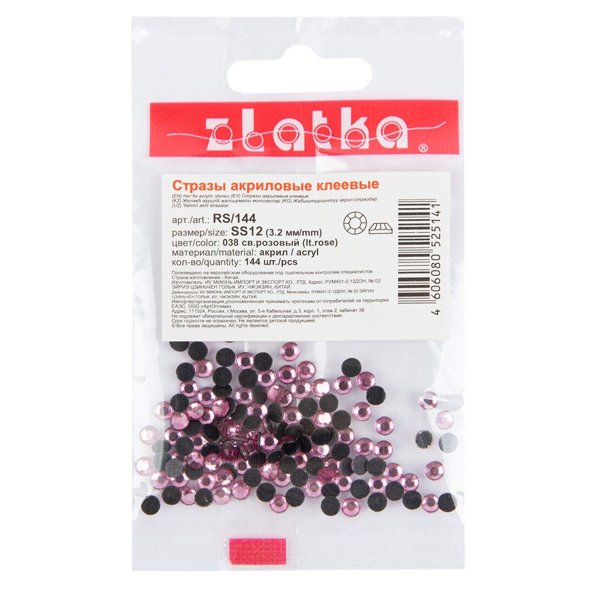 Страз клеевой " Zlatka" RS/ 144 SS12 3 - 3. 2 мм акрил 144 шт в пакете с еврослотом 017 т. голубой ( capri blue)